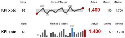 As Sparklines são na prática gráficos de linhas (quase sempre), simples, condensadas, praticamente da dimensão das palavras, que apresentam a evolução temporal de uma determinada métrica. Neste modelo de gráfico, retira-se um conjunto de informação redundante (por exemplo: eixos, escalas, gridlines linhas limite e legenda) e consegue-se obter um efeito surpreendentemente eficaz. A simples evolução da linha é suficiente para que se perceba a forma como um determinado indicador tem evoluído ao longo de um intervalo de tempo.